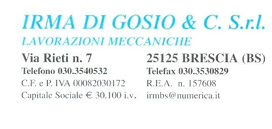 L’azienda nasce a Brescia nell’anno 1966 dall’idea di due colleghi operai metalmeccanici, poco più che quarantenni, che unendo le prime due lettere dei nomi delle rispettive mogli fondano la società “Officina Meccanica Irma”.